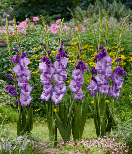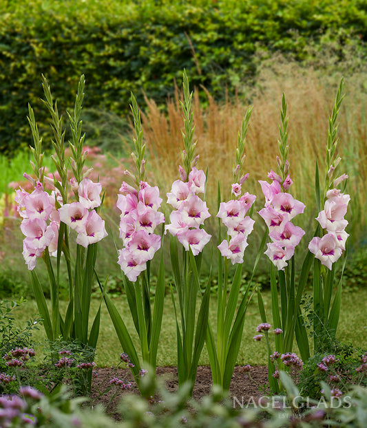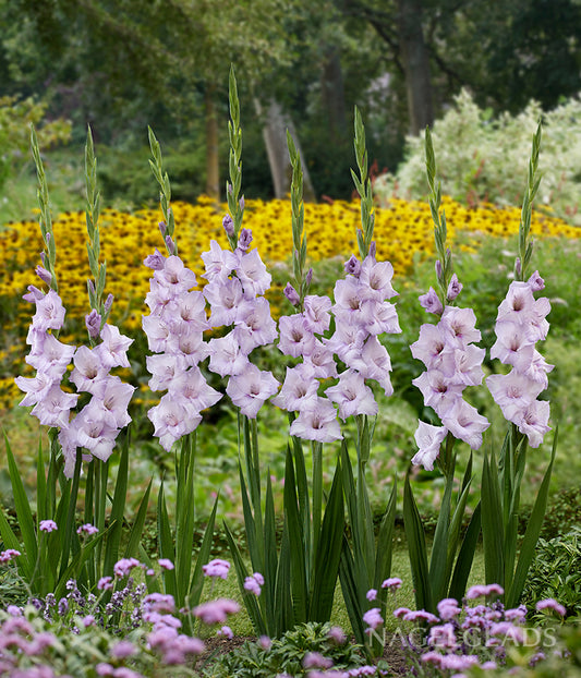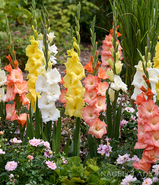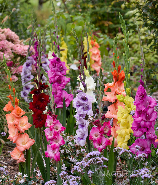 Our hardy bicolored Gladiolus thrive in a variety of climates & soil conditions, making them an ideal addition to any garden.  Their striking, sword-shaped foliage rises to reveal a spectacular array of colorful blossoms, creating vertical splendor & a spectacle of beauty.
